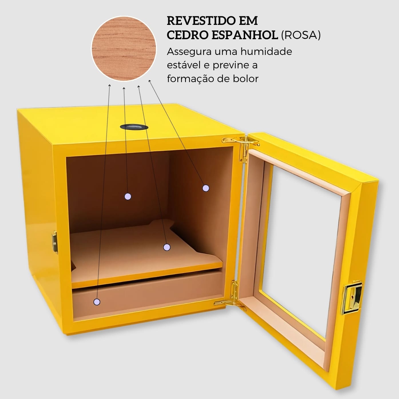 - Fabricado nacionalmente: Qualidade e Segurança proporcionados por quem está a mais de 20 anos no mercado especializados em fabricação de Umidores para Charutos atendendo as principais Tabacarias do Brasil.