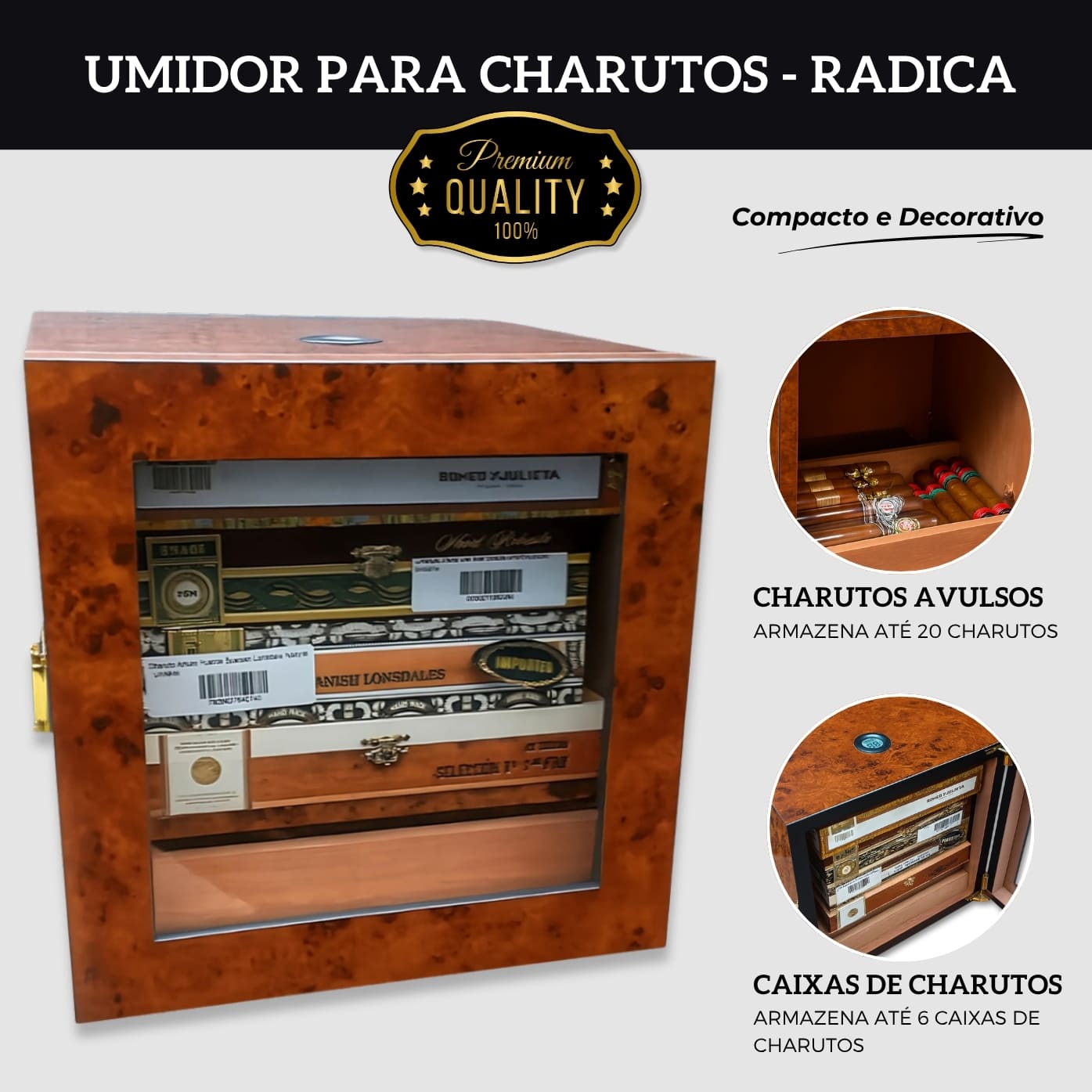 Umidor de Charutos Compacto Radica – Elegância e Funcionalidade em Cada Detalhe